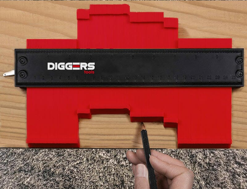 Nyhet i nettbutikken fra Diggers! Konturmal Nå kan man enkelt kopiere og gjenskape komplekse former med den nye konturmalen fra Diggers! Måler og gjenskaper komplekse former nøyaktig Sikkert låsesystem Praktisk å bruke på laminat, lister, kantlegging, planker, tepper o.l. Nøyaktig og lett å bruke Laget av høykvalitet ABS-materialer