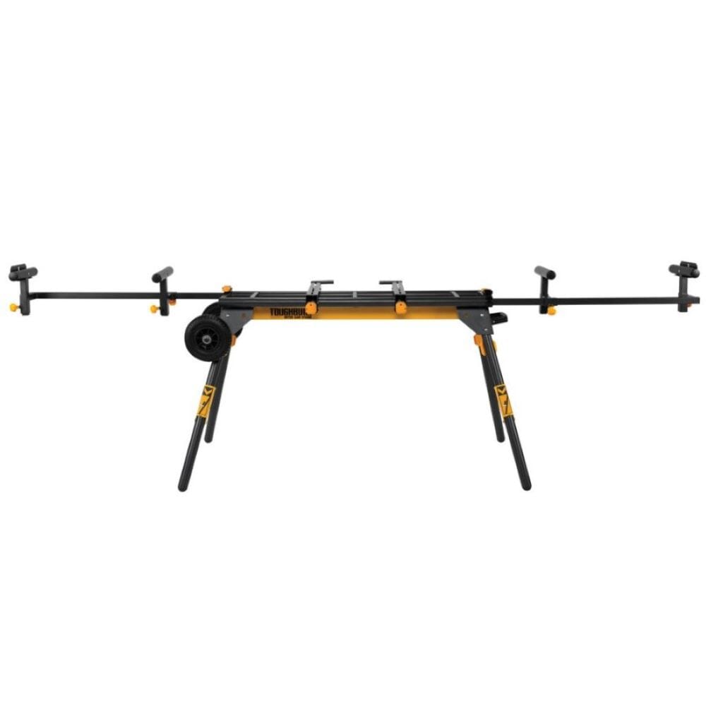ToughBuilt 124" gjærsagstativ er et av de mest robuste arbeidsstativene på markedet i dag. Når det er fullt utslått, er det 124" (315 cm) langt og 33,5" (85 cm) høyt, noe som gjør det mulig å kappe lange materialer uten nedbøyning. Stativet har 4 uttrekkbare materialstøtter, 2 stoppere, 2 hurtigutløsende verktøyfester for enkel montering av flere verktøy som gjærsager eller kapp-/gjærsager, samt 8,5" (21,6 cm) massive gummihjul som gir jevn transport til enhver arbeidsplass. I tillegg har stativet støttepinner som gjør det trygt og enkelt å lagre materialer over bakken.